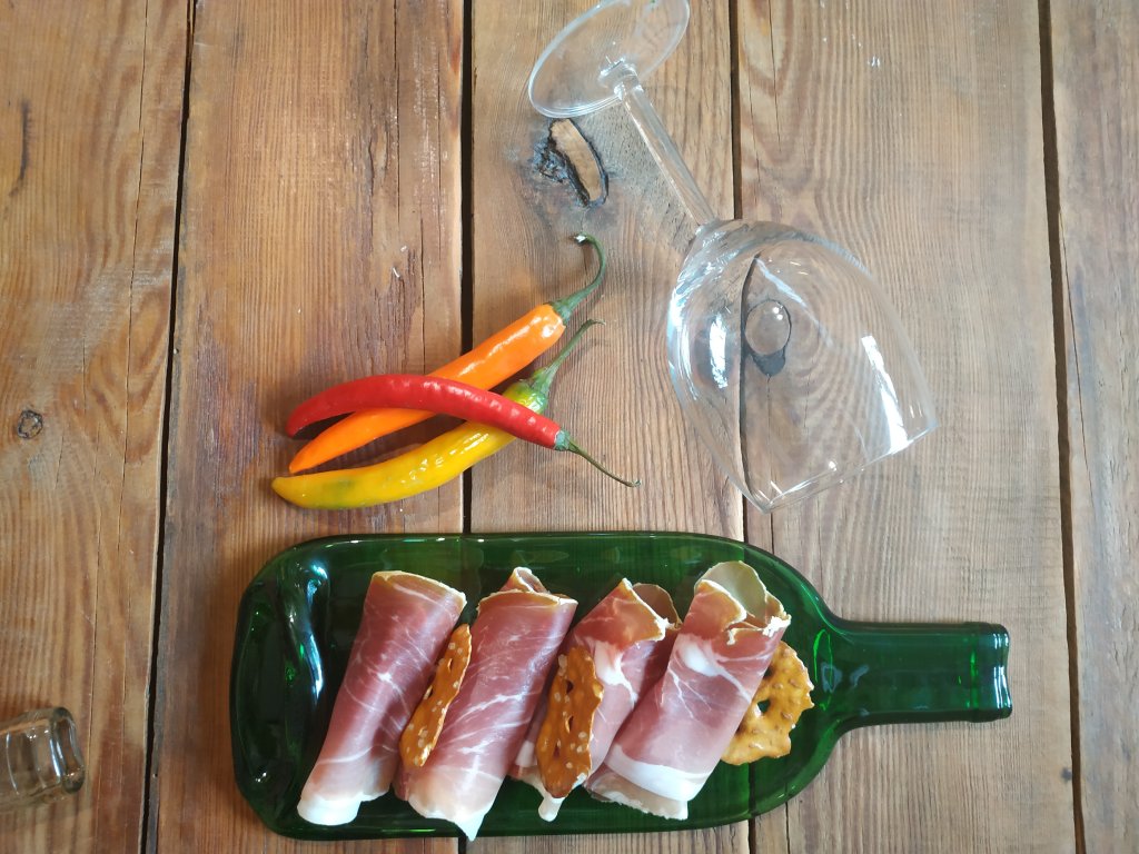 Vyrobeno recyklací z vinných lahví.