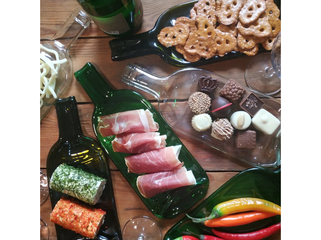 Servírovací tácek na sýry a delikatesy lahvově zelený
